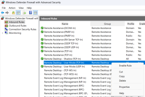 Klik Inbound Rules → cari Remote Desktop (TCP-In).