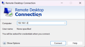 Klik Connect, lalu login menggunakan username dan password Windows di komputer target.
